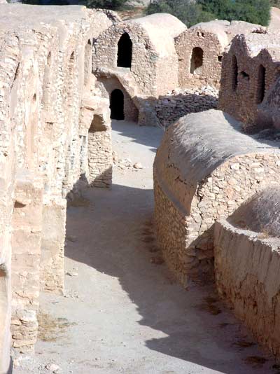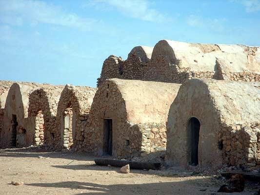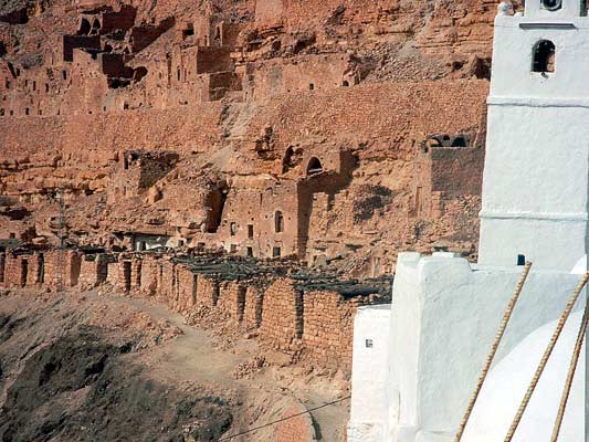 Wraz z poznanymi na wycieczce rodakami wybieramy się na dużą wycieczkę. Wynajmujemy busika z kierowcą. Kierowca to dar od losu, jest uprzejmy, nie ma u niego żadnych extra dopłat, nie wpycha nas w ręce sprzedawców pamiątek. Jest za to niezłym przewodnikiem, potrafi zaproponować ciekawą i sensowną trasę i po drodze przekazać wiele informacji. Pan Chedli tel. (szukam). Djerbę opuszczamy starą rzymską jeszcze groblą zwana El Kantara. Szara rura to jedyne źródło wody, Wyspa jest tak niewiele uniesiona nad poziom morza, że nie da się wykopać studni ze słodką wodą. Gdy pojeździ się po Jerbie i zobaczy tutejsze miasta, gdy zobaczy szeregi hoteli jeden przy drugim to zadziwia cienkość tej rury. Zasada dostępu do wody jest jedna, hotele w pierwszej kolejności, gdy jedni pluszczą się w wodzie inni mają suche krany. Następny przystanek to słone jezioro. To nie było to słynne koło Tozeur , ale sprawdziłem że równie słone. Jedziemy do Tataouine, to najdalej na południe wysunięte miasto w Tunezji. Jest zdecydowanie cieplej, nawet nasz kierowca zdecydował się na zdjęcie zimowej kurtki. Tu kupiliśmy najlepsze daktyle w Tunezji, nigdy do tej pory nie kupiliśmy tak dobrych i chyba tez nigdy tak tanio (3DT). Niestety wzięliśmy tylko 2 kg, błąd. Błąd nie do naprawienia bo trzeba się śpieszyć. Chenini to miasto jak, mówił miejscowy przewodnik, półtroglodytów. Chodziło mu o to że to nie jak w słynnej Matamcie, gdzie są domy wydrążone w ziemi całkowicie, u tylko są częściowo wydrążone, a przód dobudowany. Taka zamieszkała góra jest bardzo oryginalna, trzeba chwilę przyzwyczaić oczy by zaczęły dostrzegać owe domy. Efekt wtopienia się w górę jest całkowicie zamierzony, gdyż były budowane by znaleźć bezpieczne schronienie przed inwazją, jakiej doznali Berberowie od Arabów. Dziś duża część domostw jest opuszczona i uwaga, można wynająć na wielce orginalną bazę wypadową do wycieczek w otaczające góry, czy Saharę. (mam telefon gdyby co)Ksary to takie komóreczki pozlepiane ze sobą, ze 2 metry szerokie 3-4x dłuższe. Ustawiane w prostokąt z jedną bramą tworzą fortecę, posiadały nawet załogę obronną. Nie były jednak miejscem zamieszkania, a magazynami na zboże. Zwiedzamy 3 kolejne ksary, mimo że każdy z nich składa się zawsze z podobnych komórek (ghorfas) opartych na podobnym schemacie. Każdy był odmiennym, raz dla użytego miejscowego materiału, dwa że co powoli czyniono ręką ludzką nabierało swoistego charakteru. Zachwyciłem się tymi budowlami, zwłaszcza że w dwóch z nich nasza mała grupka, to byli jedyni zwiedzający była więc możliwa chwila spokoju i refleksji nad historią tych miejsc. Niegdyś wspólne dzieło okolicznych mieszkańców, chroniące ich zasoby przed obcymi, ale też miejsce gdzie schodzono się zarówno z potrzebą gospodarczą jaki przy okazji spotkać sąsiadów. Dziś to już tylko zabytki, pamiątki danych czasów. Na Djerbę wracamy inną drogą, tym razem płyniemy promem. Po wrażeniach dnia jesteśmy już dobrze zmęczeni.