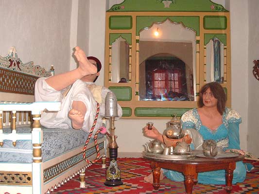 Czasami można źle trafić. Na postoju stoją taksówki, kierowałem się do innej ale taksówkarze mieli jakaś ustaloną kolejkę i skierowali nas do innej. To było to złe trafienie, facet na początek zafundował nam niemieckie śpiewanie z kasety, głośniki na max. Ogłuszonych zawiózł gdzieś i że na chwile wyskoczy. Wyskoczył nie wyłączając licznika, wrócił po paru minutach i przyniósł plik ulotek o atrakcjach turystycznych Djerby. Gdy już byłem skłonny go polubić za tą inicjatywę, że nam chciał przekazać wiedze o wyspie, kazał nam te ulotki sobie zwrócić i schował je do schowka. Cały czas zarzucał nas pytaniami o wszystko, nie było to jednak zaspakajanie ciekawości, bo nie zwracał nawet uwagi na odpowiedzi i pytał po kilka razy o to samo. Nie pomagały prośby, nie zrażał się ignorowaniem.