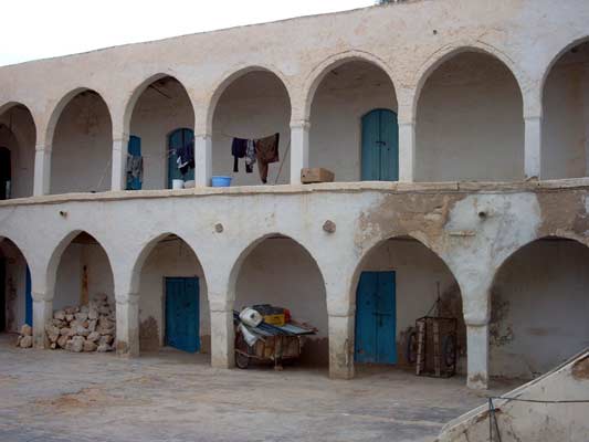 W Houmt Souk zaglądamy do funduków, czyli tysiącletnich, niekiedy hoteli. Jeden z nich działa do tej pory jako Youth Hostel. Jest to prawdziwa okazja, dla globtroterów, wyspać się w wiekowym zabytku, dogodnie położonym w samym centrum i do tego skromnie zapłacić od 6 DT za osobę. Jest tam czysto i sympatycznie, choć ze zrozumiałych względów pokoje a bez łazienek. Mieści się na Rue moncef Bey 11, tel. +216 75 650 619. Ostatni punkt zwiedzania to Twierdza - Borj Ghazi Mustafa, koło portu.